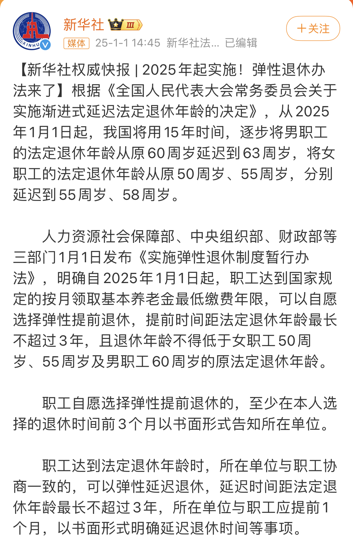 經(jīng)過多年的研究與探討,我國推出了退休最新政策,這一政策在廣泛征求意見的基礎(chǔ)上,經(jīng)過多次修改和完善,最終得以實(shí)施,標(biāo)志著我國退休制度的進(jìn)一步改革,為應(yīng)對老齡化社會(huì)提供了有力支持。