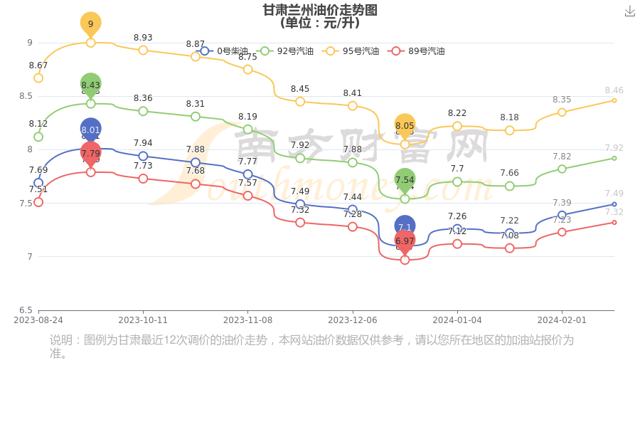 隨著國際油價(jià)的波動(dòng),蘭州的油價(jià)也有所調(diào)整,XX加油站透明公開油價(jià)信息,讓你一目了然最新蘭州95號(hào)汽油價(jià)格,相較于市場價(jià)格,這里的油價(jià)更加親民,質(zhì)量也有保障,想要了解最新的油價(jià)動(dòng)態(tài)嗎?那就一定要關(guān)注我們的XX加油站!我們提醒您,為了獲取更準(zhǔn)確的油價(jià)信息,建議提前關(guān)注油價(jià)動(dòng)態(tài)或通過官方渠道查詢最新油價(jià)。