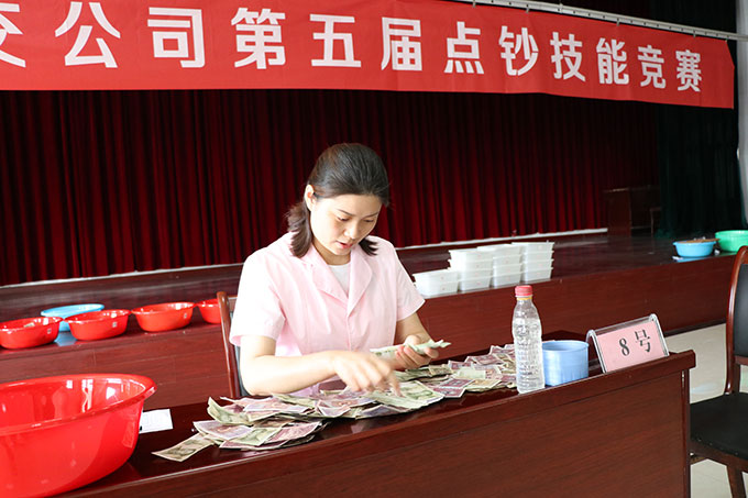 每位選手在規(guī)定時(shí)間內(nèi)完成點(diǎn)鈔任務(wù)。